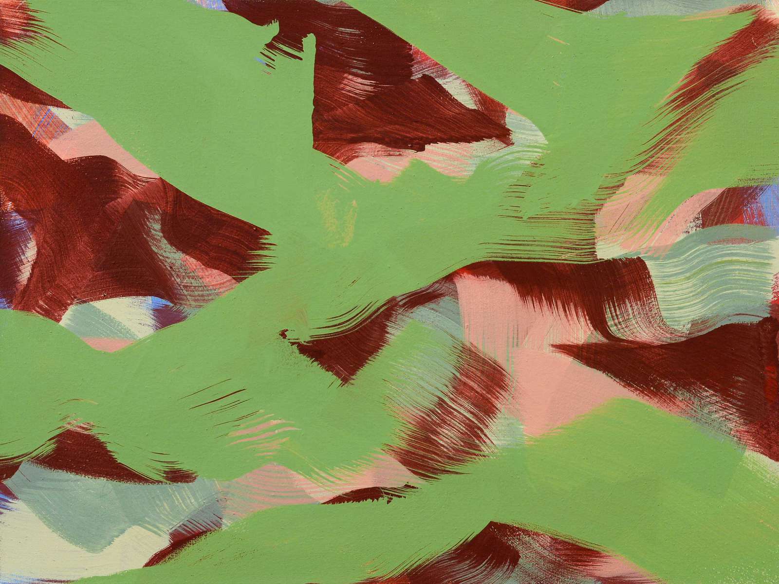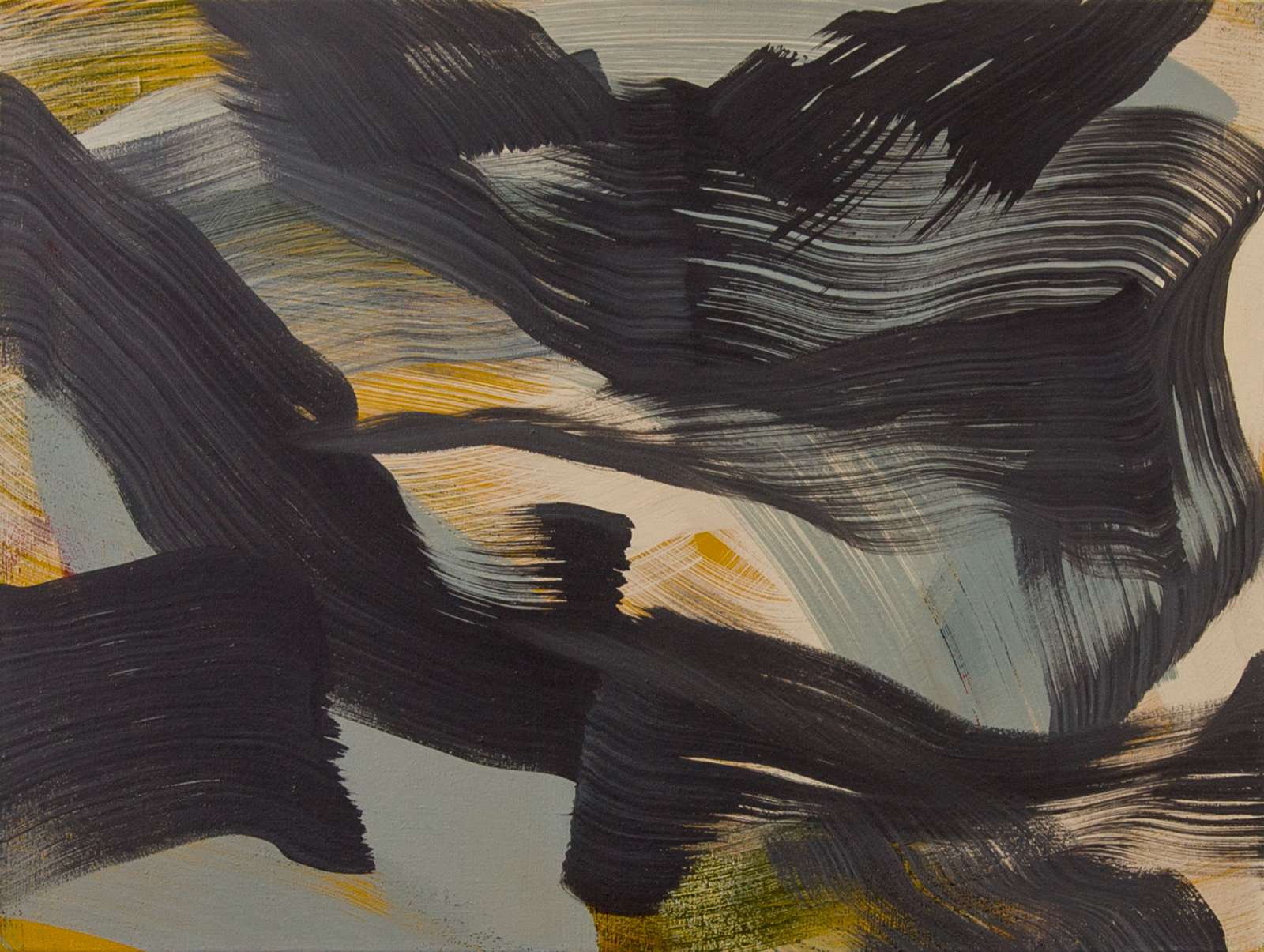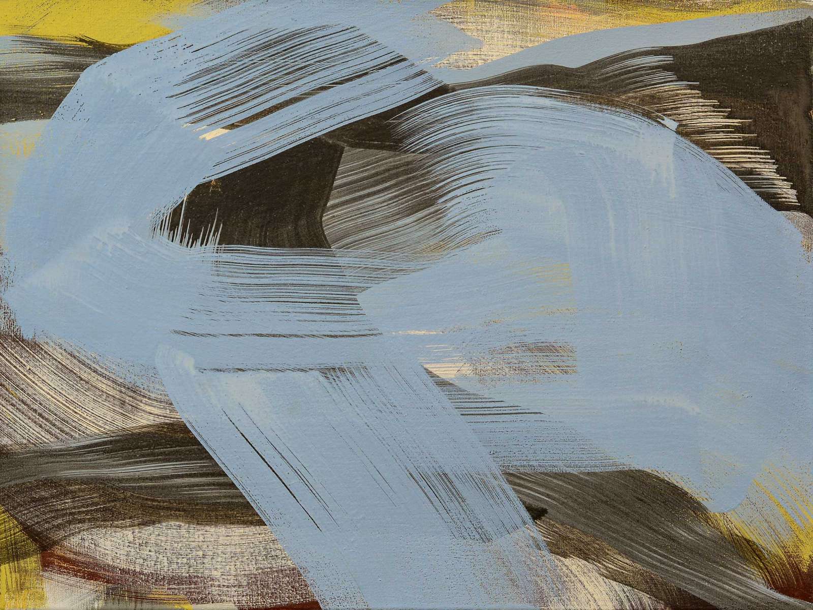 “Tijdens het schilderen laat ik me vaak meenemen door landschappelijke beelden. Deze voorstellingen worden echter niet letterlijk vertaald. De wolken, bergflanken, windvlagen of wat dan ook zijn daarom bijna alleen te vermoeden. Ik suggereer en schilder vergezichten van ‘over the hills and everywhere’.”