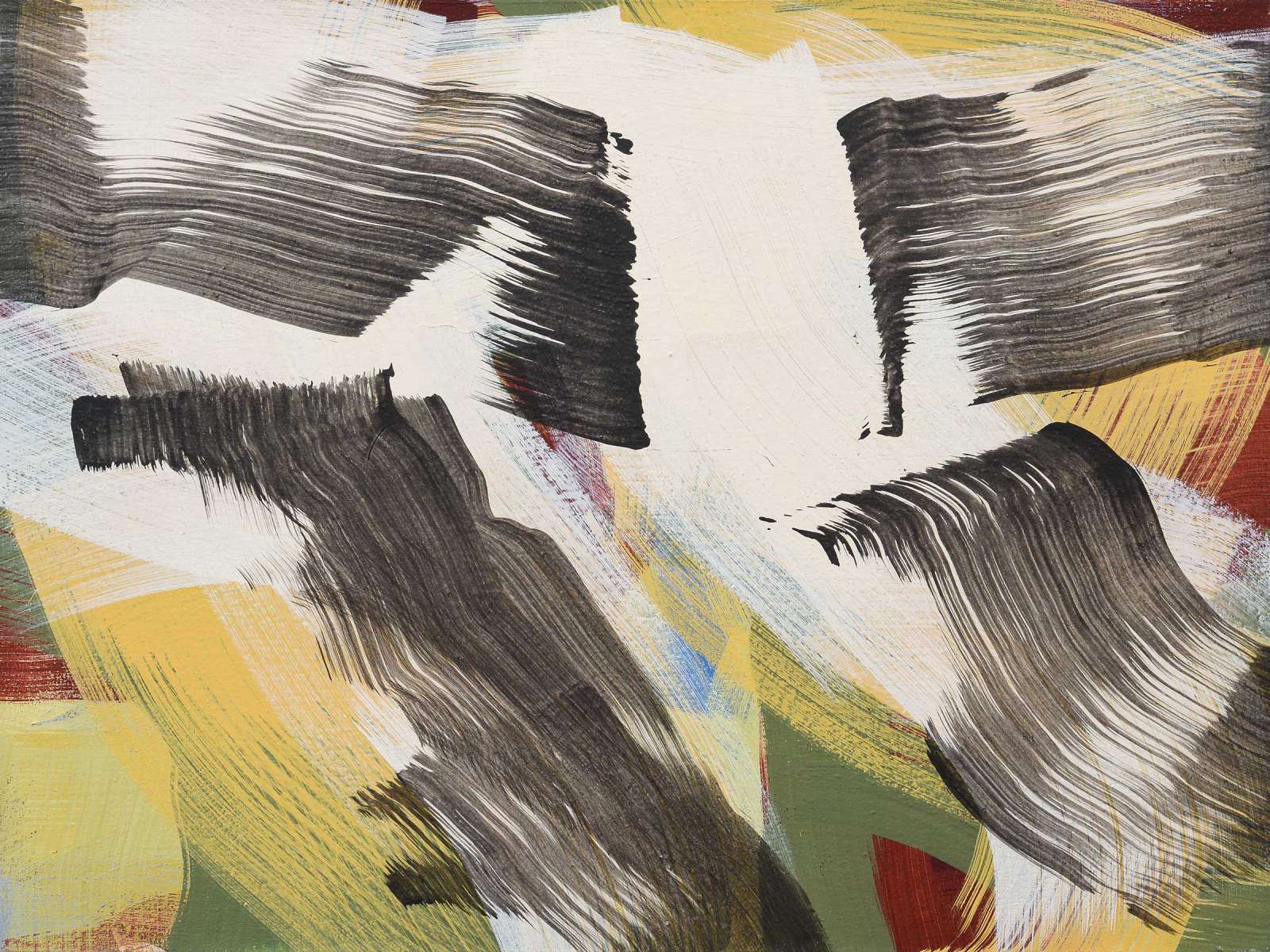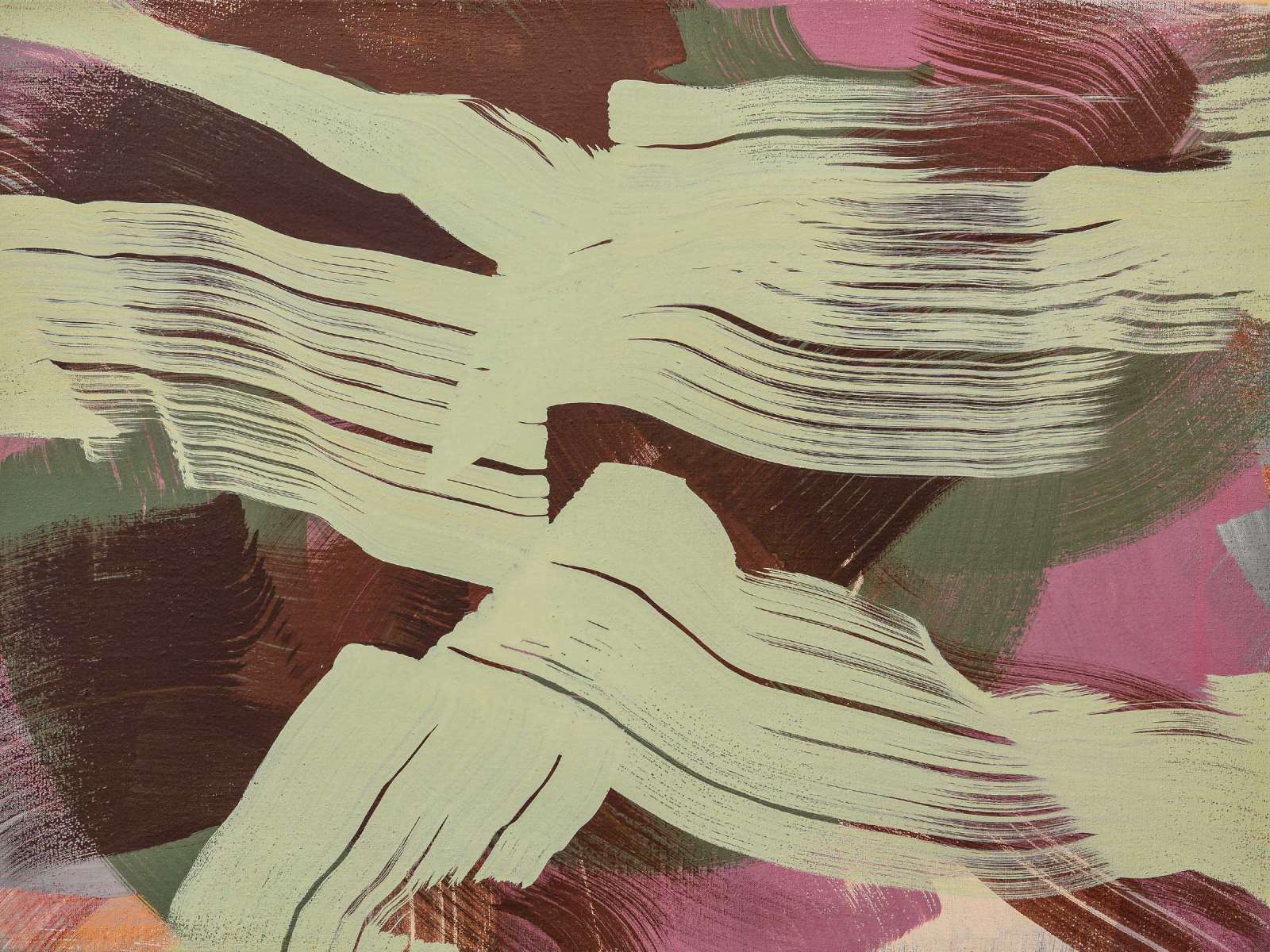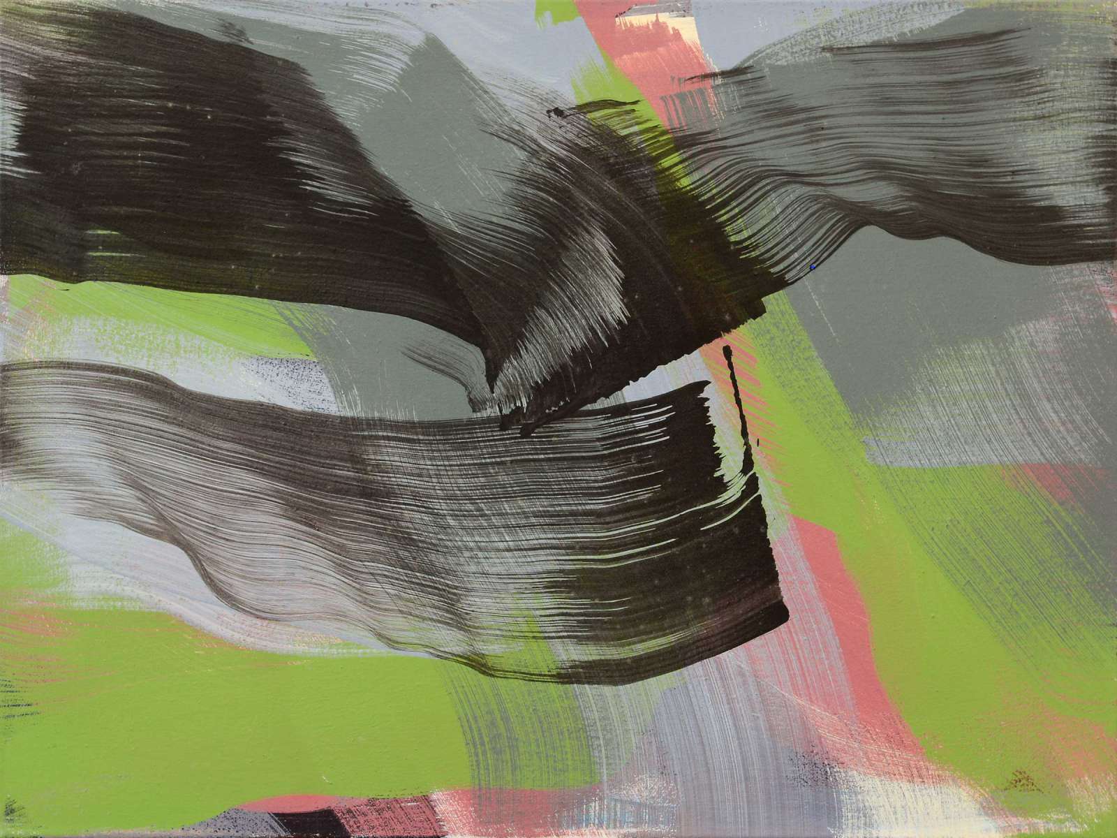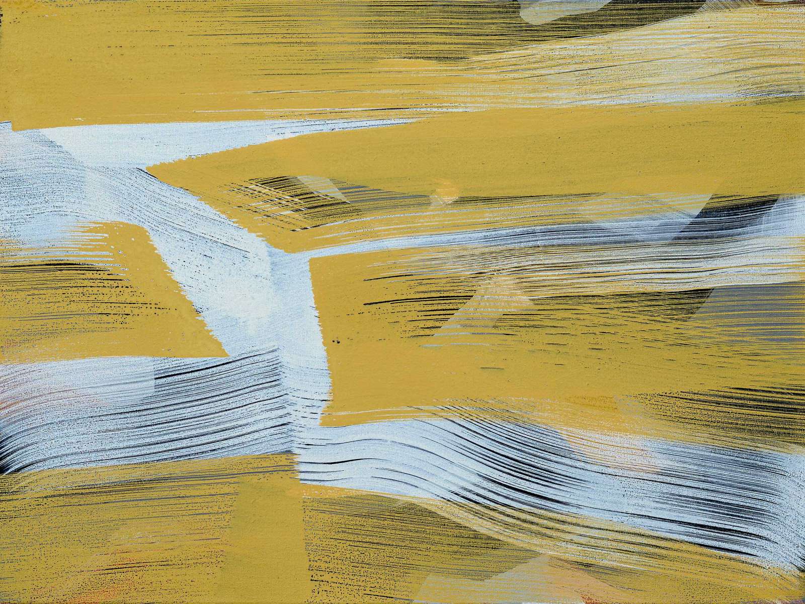 “Tijdens het schilderen laat ik me vaak meenemen door landschappelijke beelden. Deze voorstellingen worden echter niet letterlijk vertaald. De wolken, bergflanken, windvlagen of wat dan ook zijn daarom bijna alleen te vermoeden. Ik suggereer en schilder vergezichten van ‘over the hills and everywhere’.”